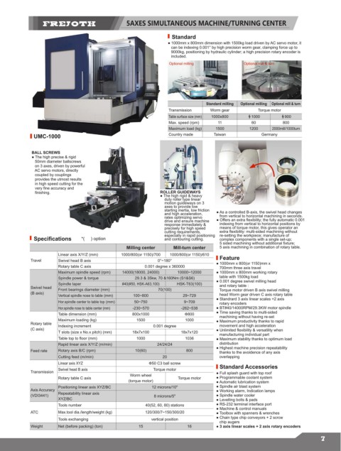 Specifications *( ) option especially in rapid positioning re-setting the workpiece; manufacture of